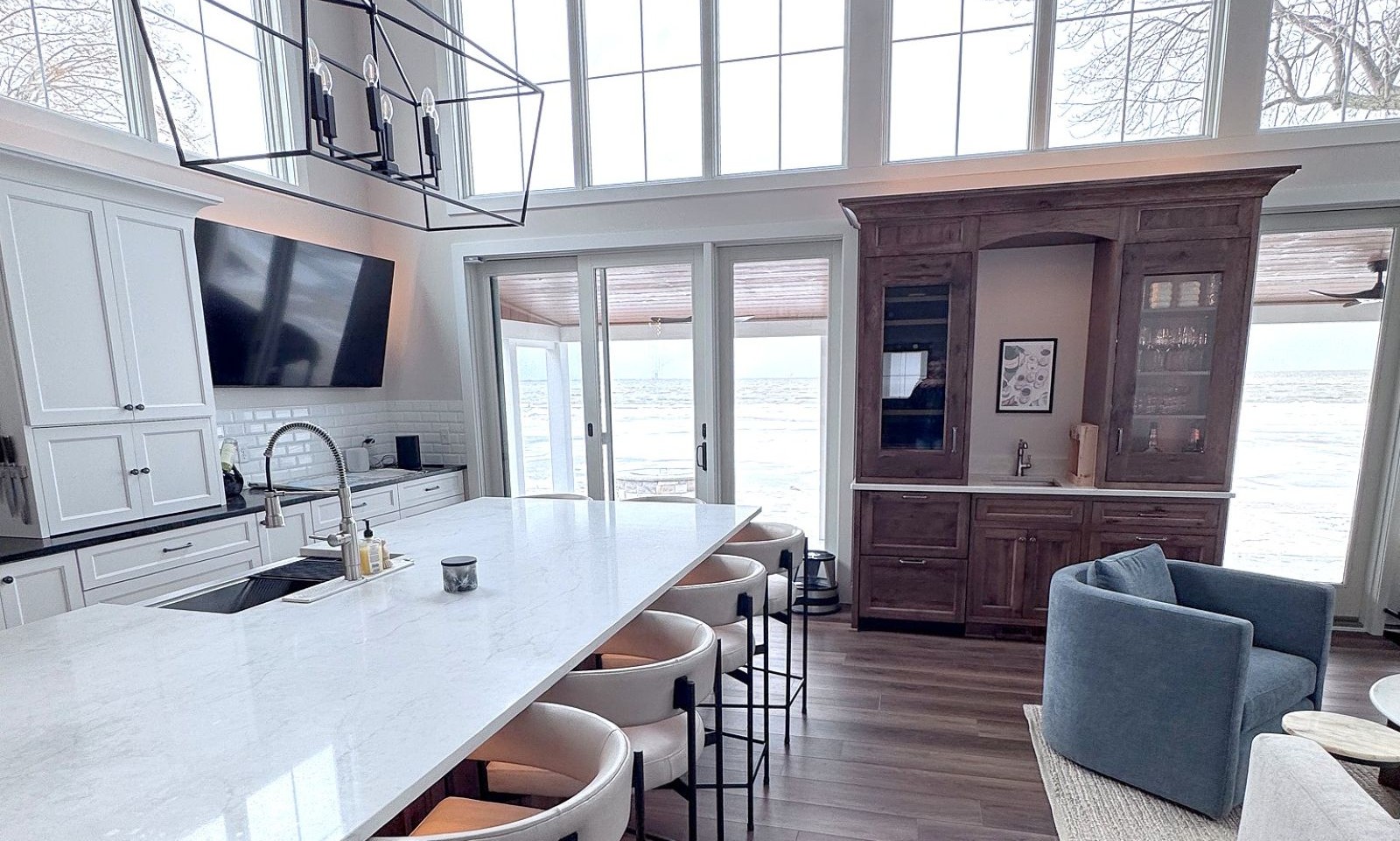 Thoughtfully crafted with classic architectural details, this traditional and elegant home showcases breathtaking views of the bay from expansive windows that fill the space with natural light. Inside, show-stopping chandeliers add a touch of luxury and sophistication, elevating every room with warm, inviting charm. Designed for both everyday living and memorable gatherings, this custom home captures the essence of elegant home design while embracing the beauty and tranquility of lakeside living.